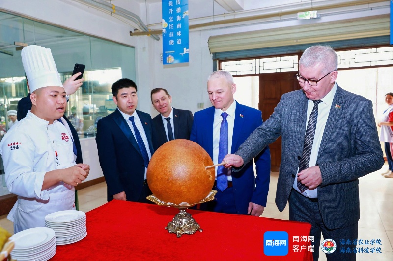 白俄罗斯国职业教育研究院代表团正在海南省教育厅职业教育取教育处担任人和海南省农业学校带领班子的伴随下,走进海南省农业学校休闲农业专业烹调实训室。受访者供图正在休闲农业专业烹调实训室内,海南煎堆、斑斓马来糕、烹调实训室里学生们认实地操做着面盘、面塑等中国保守烹调粉饰技法,白俄罗斯国职业教育研究院代表团细心领会特色美食制做过程并品尝美食,感触感染中国文化。